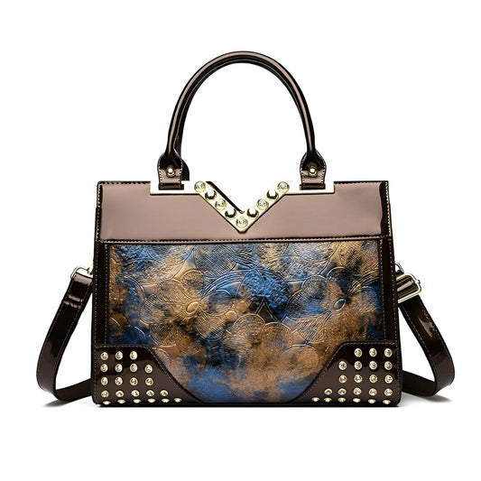 Xshe Women Elegant Embossed Tote – Rivet & Diamond Detail Large Capacity Shoulder Messenger Bag for Stylish