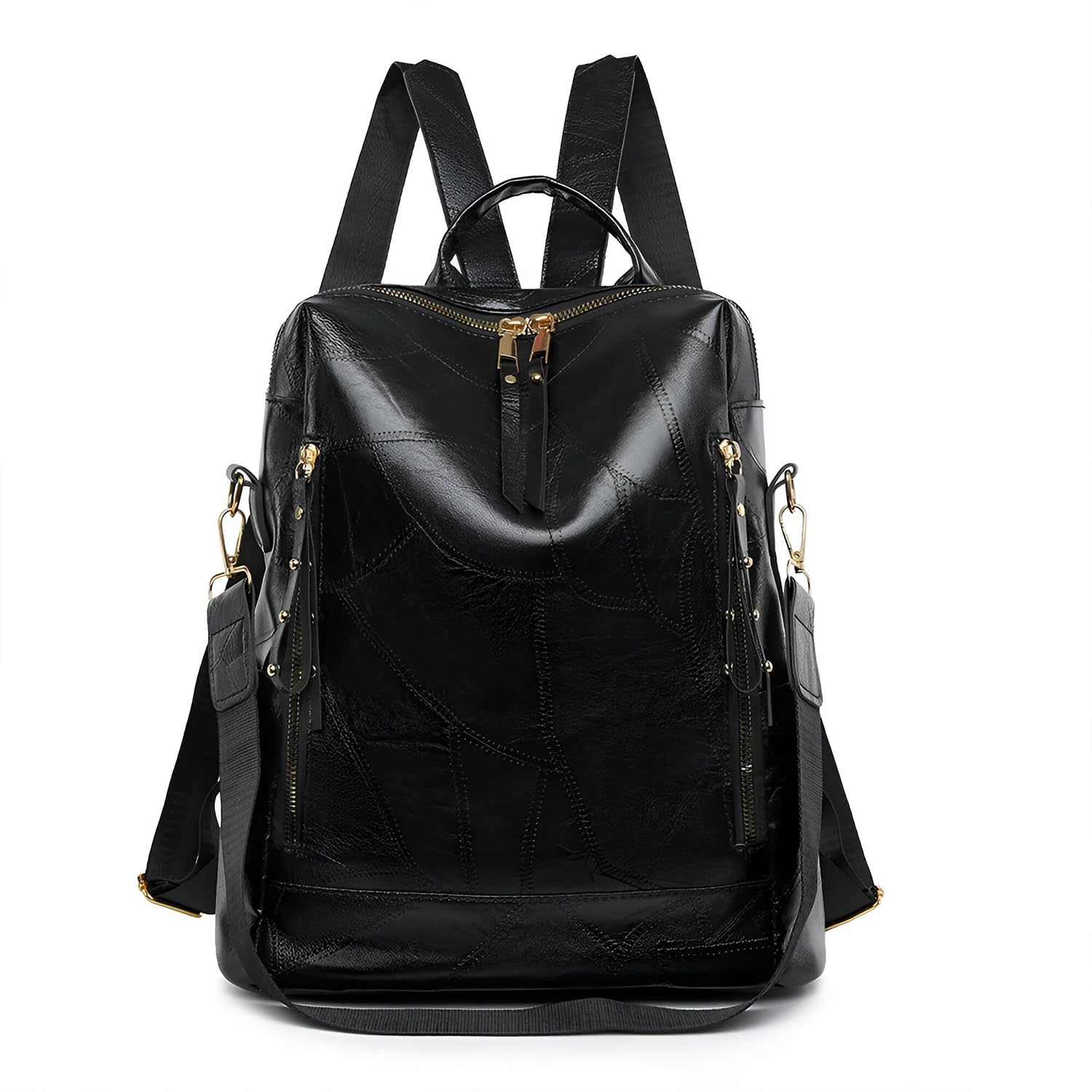 This elegant PU leather backpack blends style and function with its two-tone design and gold-tone zippers. It features a spacious main compartment with multiple pockets, perfect for daily essentials like a tablet, wallet, and phone. Ideal for work, travel, or casual outings, it offers both top handle and adjustable shoulder straps for versatile carrying. A chic and practical gift option, it’s easy to maintain with a simple wipe-clean surface.