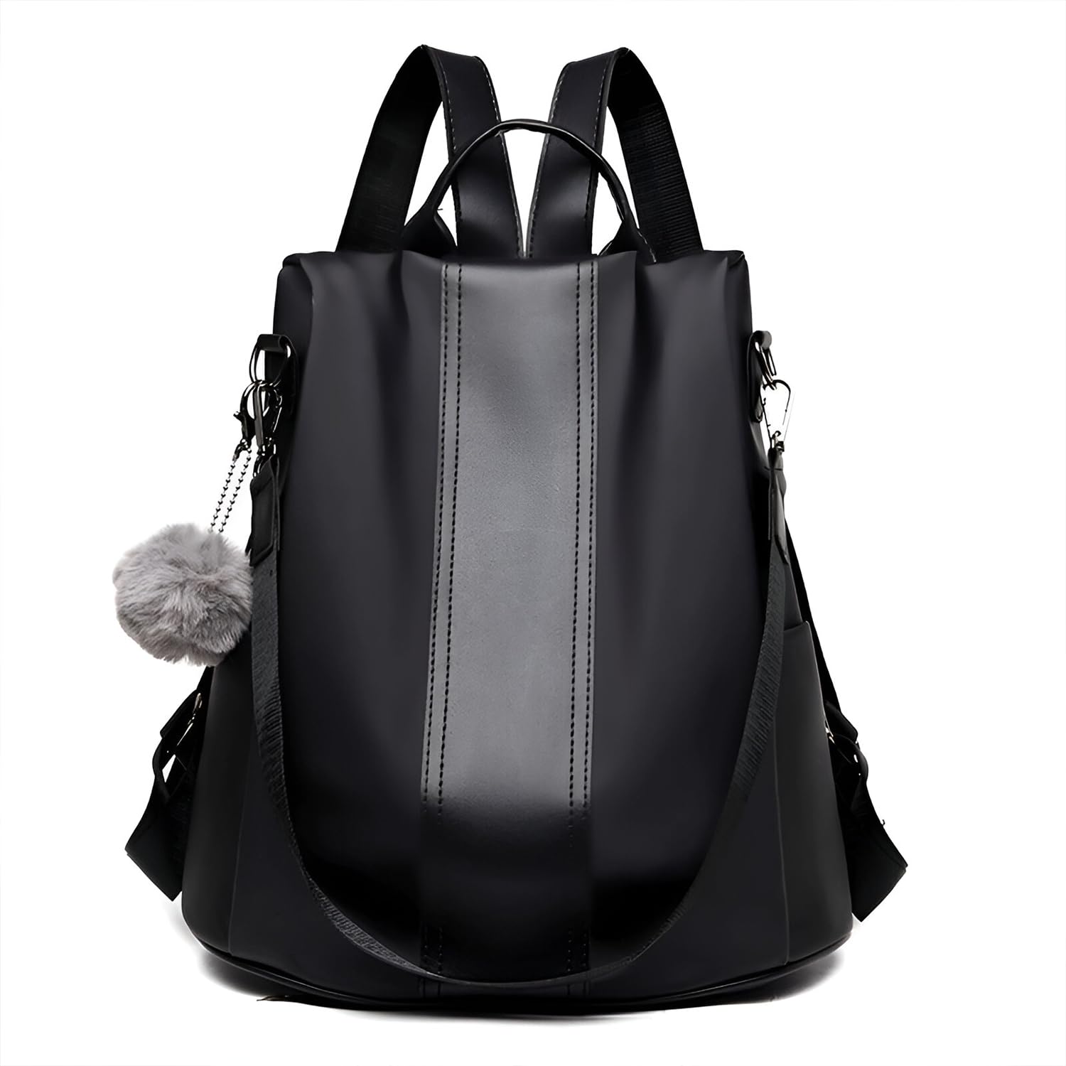 This stylish backpack is crafted from premium PU leather, offering a sleek, water-resistant, and durable finish perfect for daily use. The bag features a spacious main compartment along with inner pockets, side pouches, and a front zipper, giving you ample room to organize essentials like books, gadgets, and makeup. Its minimalistic solid pattern with stitched detailing in the center adds a modern, elegant touch. The detachable fluffy pom-pom keychain brings a fun and trendy vibe to your look. Adjustable shoulder straps and a detachable crossbody strap allow for versatile carrying styles. Whether for college, work, or casual outings, this bag perfectly balances fashion and practicality. A must-have accessory for those who love effortless, everyday style!