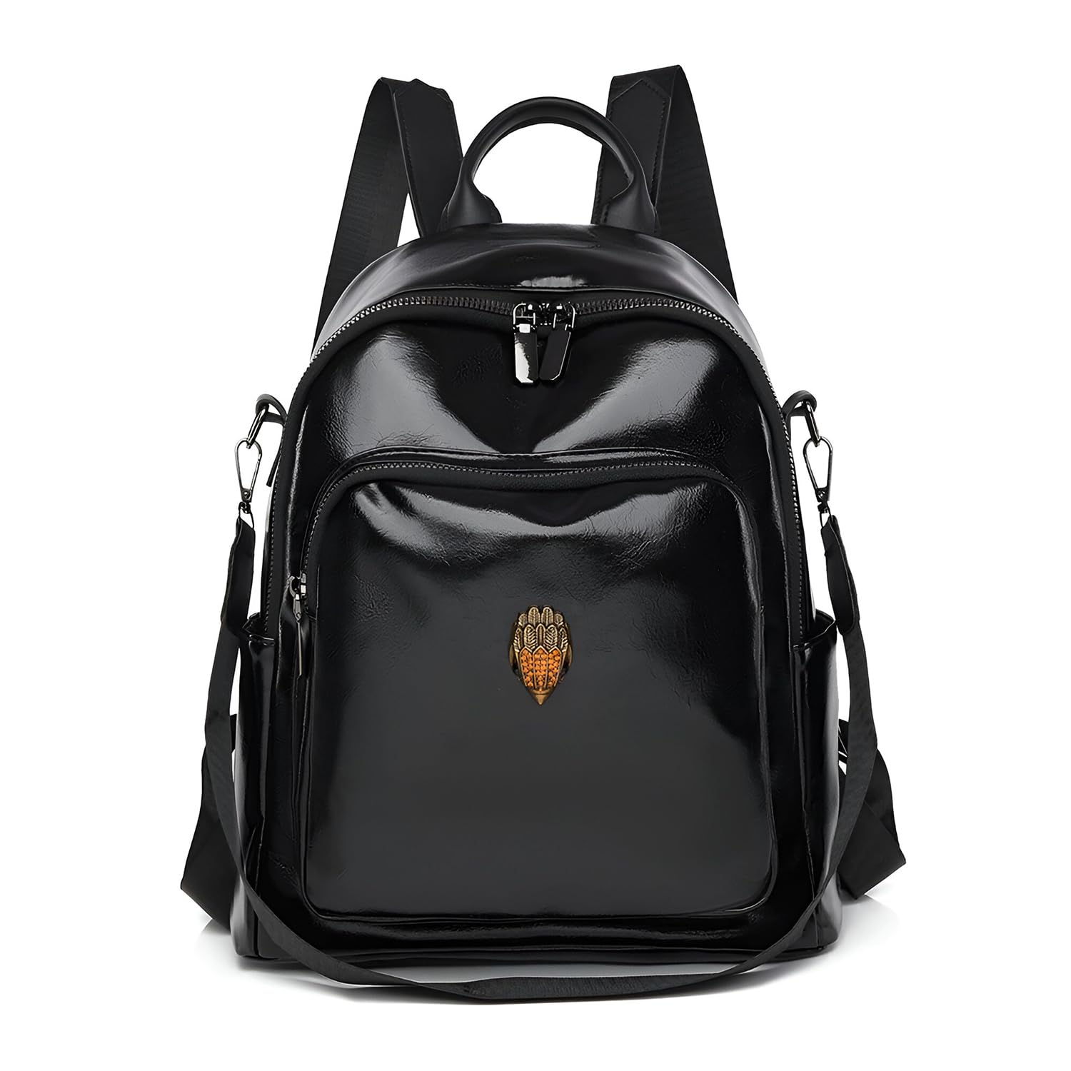 This elegant backpack is crafted from premium PU leather, offering a sleek and polished look with a smooth, glossy surface. The stylish design is complemented by a chic emblem on the front, adding a subtle touch of luxury. Spacious and practical, the backpack features a well-structured interior with multiple pockets to help you stay organized, whether you're heading to work, shopping, or on a casual outing. Its versatile design allows you to carry it as a backpack, handbag, or crossbody, blending fashion and function effortlessly.