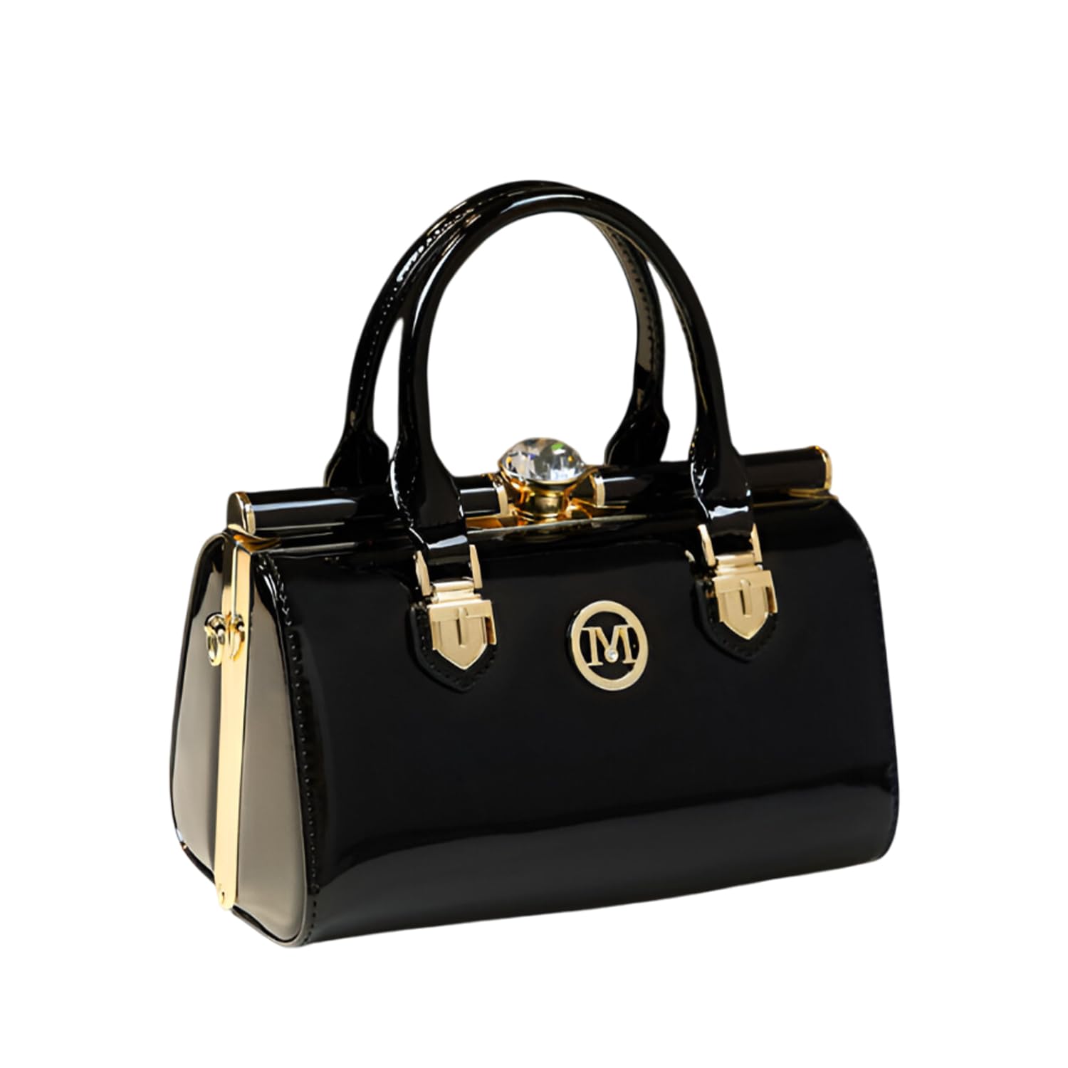 SYGA Small Boston Handbag, where modern design meets timeless charm. Designed in a pillow-shaped silhouette, this bag combines a sleek, glossy PU leather exterior with elegant gold hardware and a statement diamond-style lock closure. It’s as functional as it is fashionable.