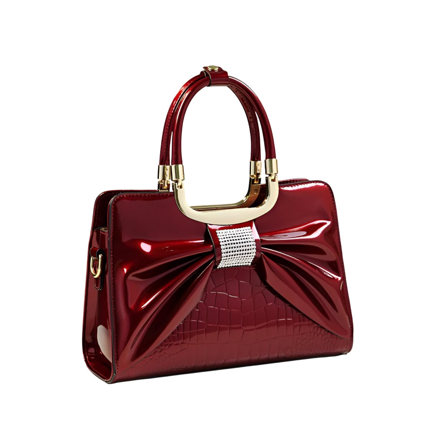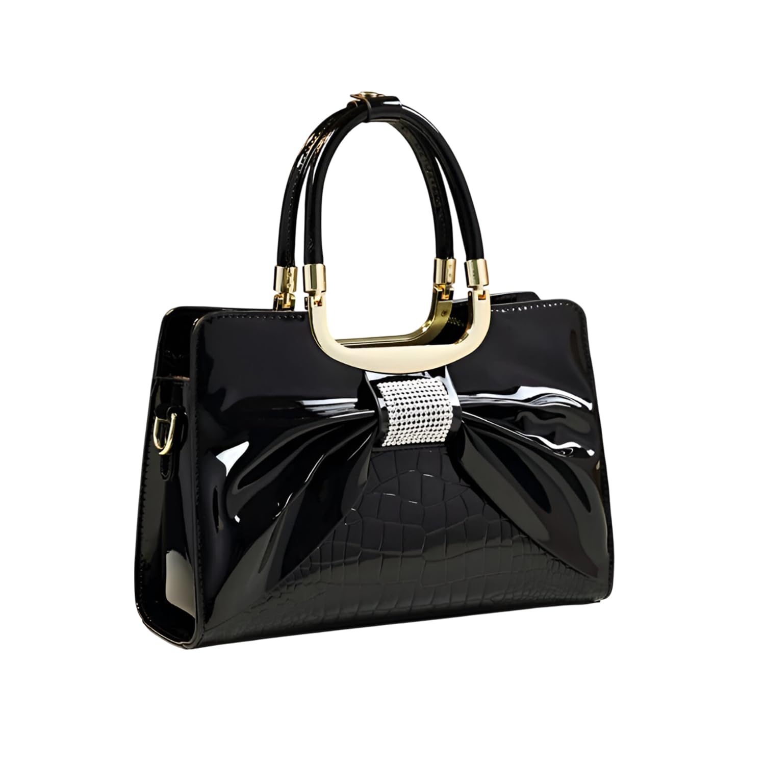 Elevate your daily style with this elegant women's PU leather tote bag. Featuring a trendy vertical square shape, this handbag stands out with charming bow and diamond details. Designed with practicality in mind, it opens to a spacious interior with multiple compartments to keep your essentials neatly organized. The soft polyester lining, adjustable strap, and durable zipper closure make it your ideal companion for everyday errands, casual outings, or workdays.
