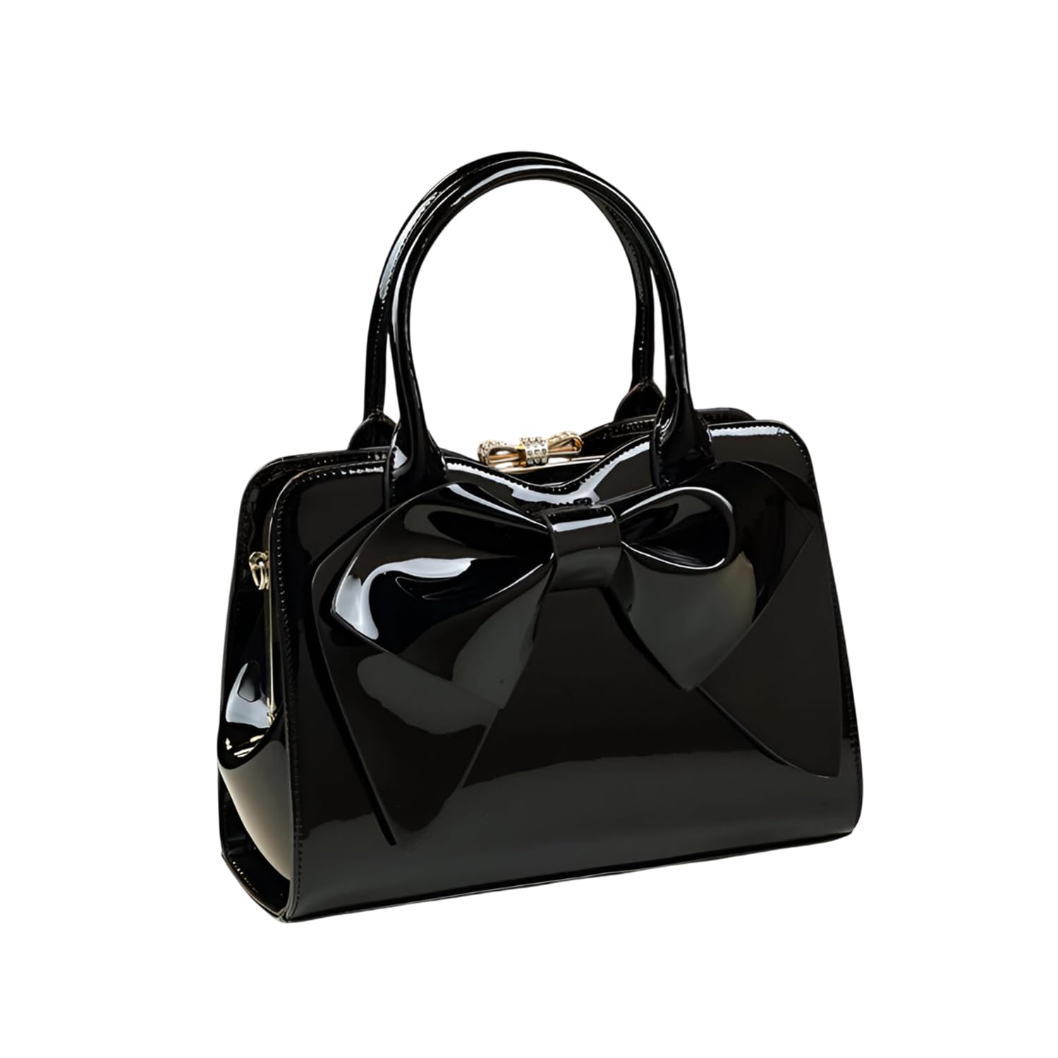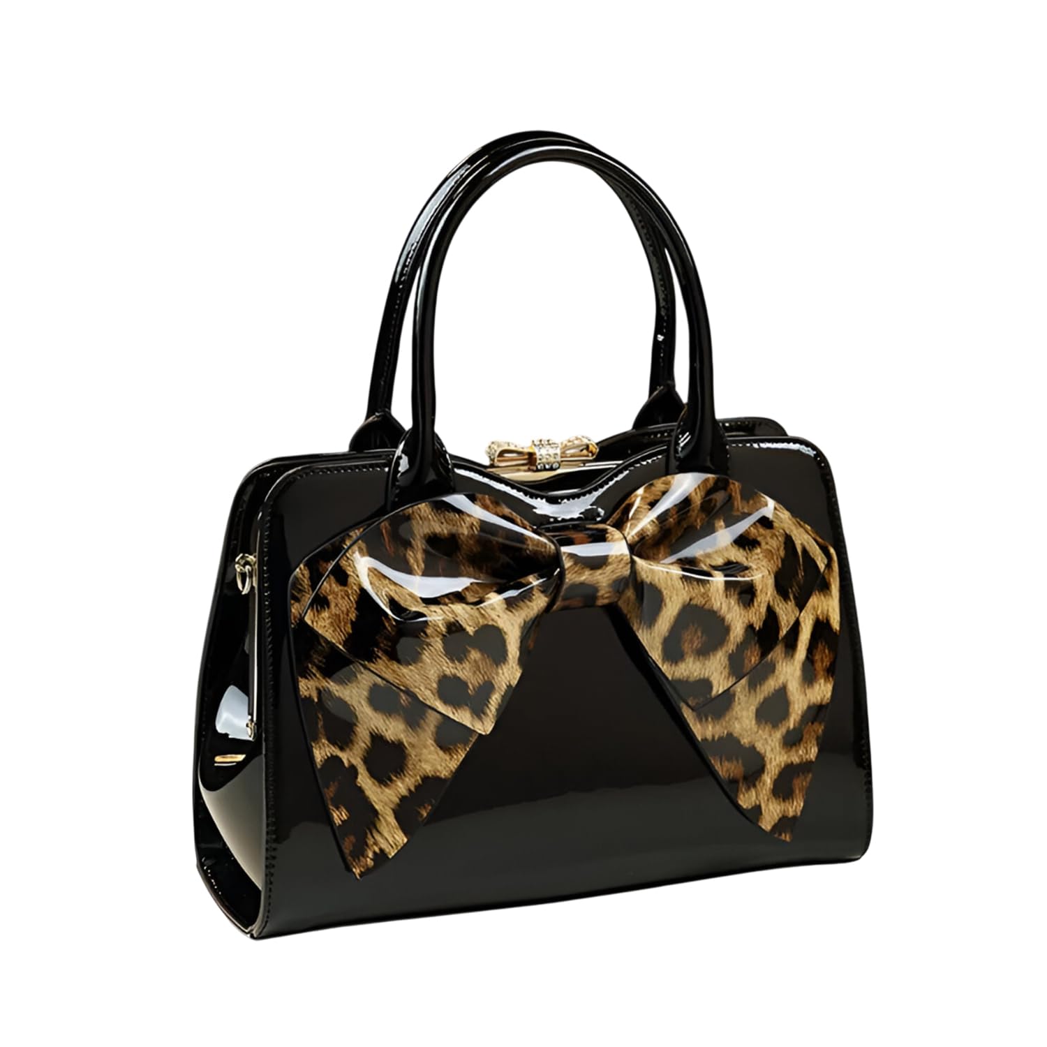 This stylish shell-shaped handbag is crafted from glossy PU material, featuring an elegant oversized bow for a touch of charm. Designed with dual handles and a detachable strap, it offers both hand-carry and shoulder-carry options. The interior includes multiple compartments such as a hidden zipper pocket, phone pocket, ID pocket, and sandwich zipper bag, keeping your essentials well-organized. Medium to hard in structure, it's perfect for daily outings, shopping, or casual events. Available in vibrant colors like burgundy, black, and leopard print. Ideal as a thoughtful gift. Simply wipe with a soft cloth to keep it looking new.