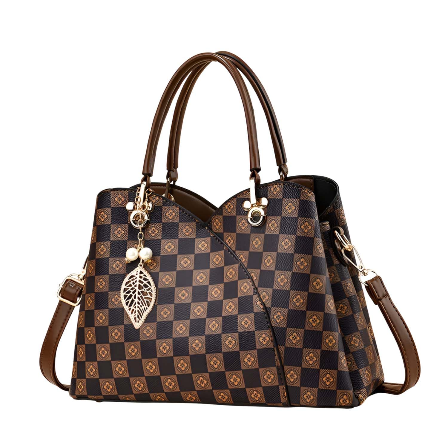 Crafted from premium soft PU leather, this elegant handbag features a unique spliced design with a stylish checkered pattern and golden accents, adding a touch of sophistication to any outfit. The interior is lined with durable polyester and includes a sandwich zipper compartment, ideal for organizing essentials like your phone, wallet, and makeup. A single adjustable shoulder strap allows for comfortable crossbody or shoulder wear. With a medium capacity, it’s perfect for daily commutes, casual outings, or light office use. The secure zipper closure keeps your items safe, while the golden leaf charm adds a chic finishing touch. An excellent gift choice for birthdays, anniversaries, or festive occasions, this bag combines fashion and function effortlessly. Wipe gently with a damp cloth to maintain its shine and longevity.