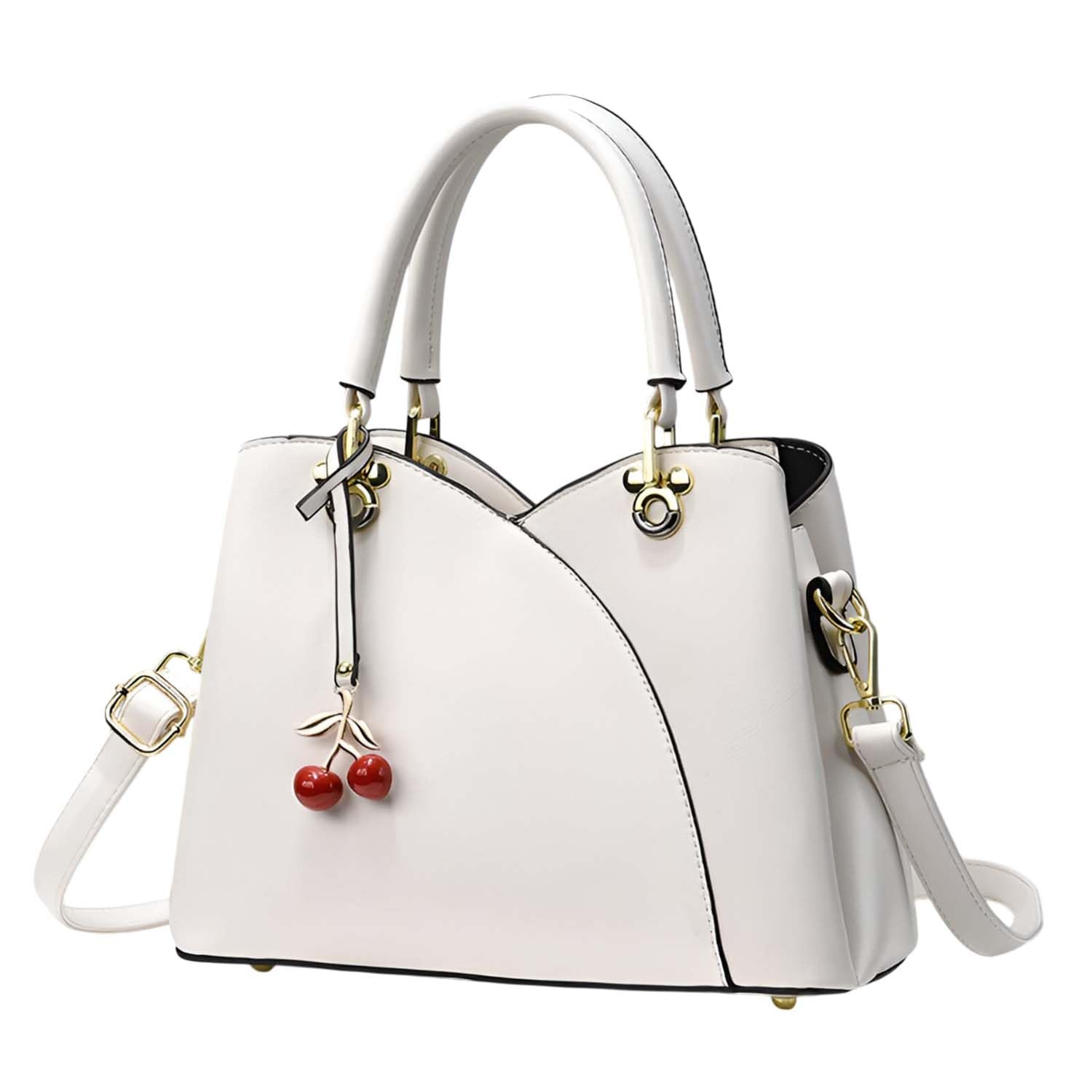 SYGA Medium Women's Handbag – an effortlessly stylish bag that combines practicality with trendsetting design. Crafted from soft PU leather, it features delicate stitching, a cherry charm accessory, and a modern horizontal square shape. The zip closure ensures safety, while the internal compartments keep your essentials well organized. Whether you carry it by hand or on the shoulder with the adjustable strap, this bag is ideal for daily use and fashion-forward looks. Available in five versatile shades including beige, blue, pink, burgundy, and black.