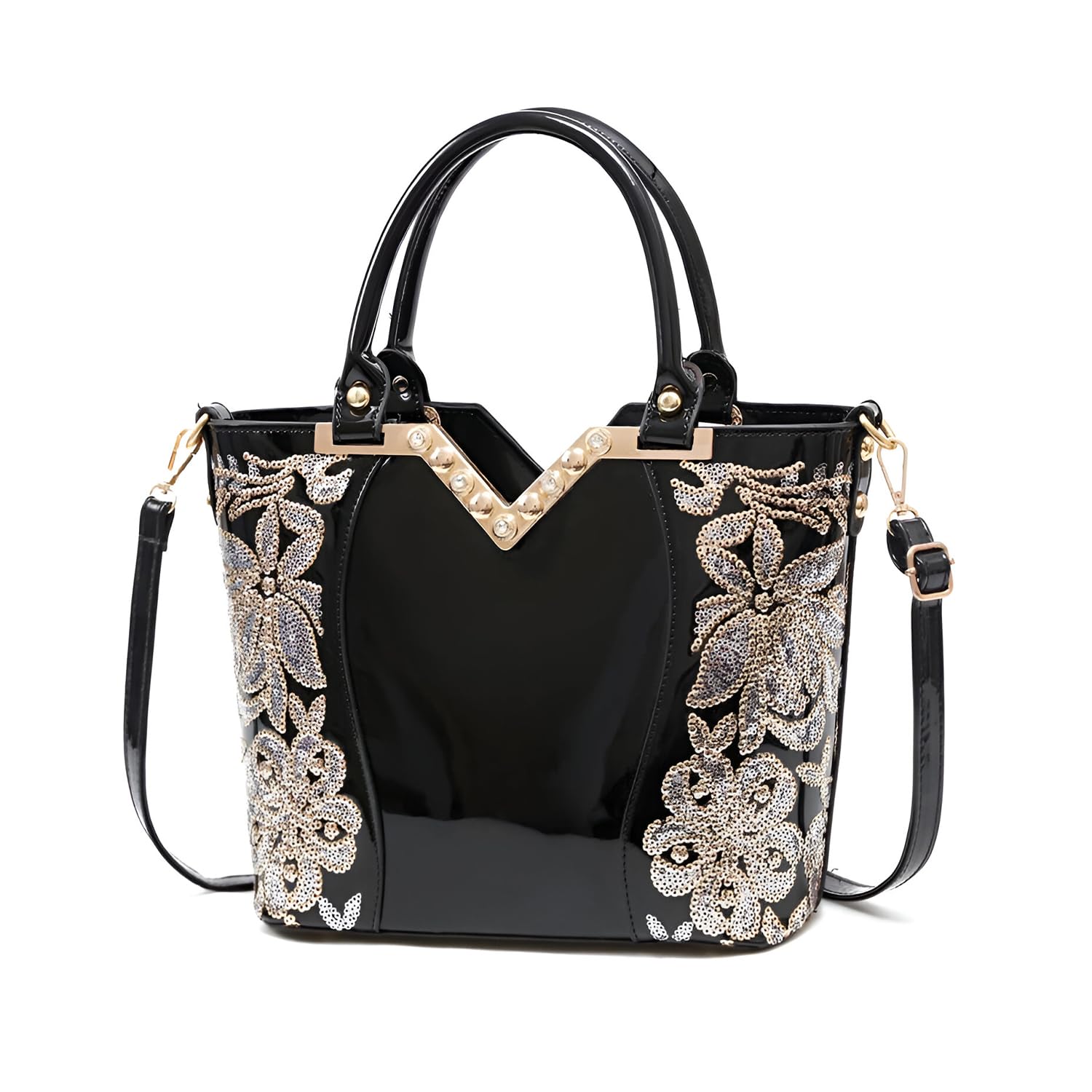 Add a touch of street-style sophistication to your wardrobe with this vertical square PU leather armpit bag. Designed with contrasting textures and sparkling floral embossments, it’s a perfect blend of elegance and everyday practicality. The structured silhouette opens via a secure zipper and includes functional compartments for quick access to your essentials. A delicate pearl and rivet “V” design at the top adds an extra layer of refinement, making it perfect for both casual and dressy occasions.